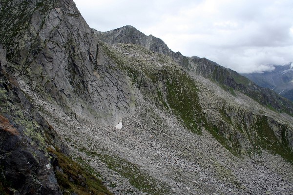 Blick üder Kar unterhalb Windbachspitze ins obere Ahrntal (in Wolken)