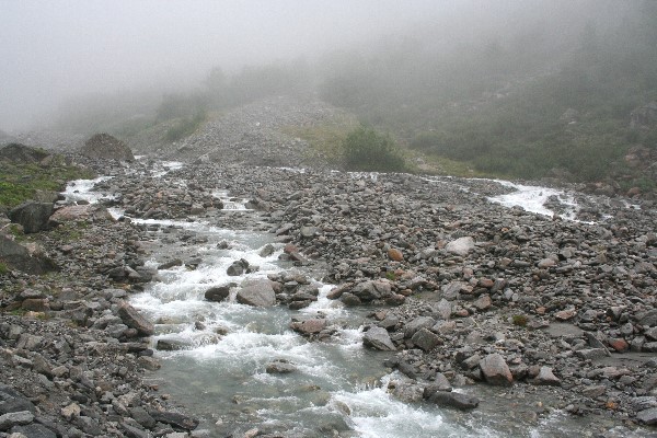 Floitenbach mit Geröllfeldern im Floitengrund in der Nähe der Labstation