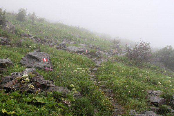Weg im Floitengrund zwischen Floitenbachbrücke und Bergbach an der Mörchnerscharte |