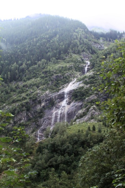 Blick zum Wasserfall im Floitengrund unterhalb der Tristenbachalm