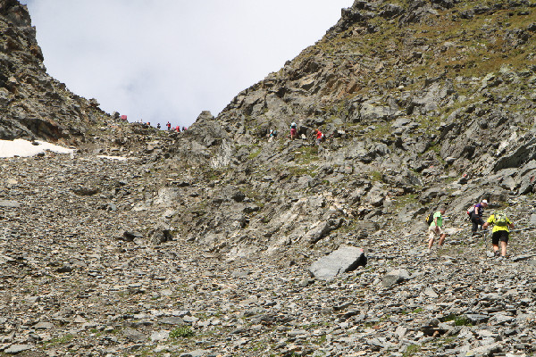 Aufstieg zur Mörchnerscharte, Blick über Blockwerk zur Mörchnerscharte, |