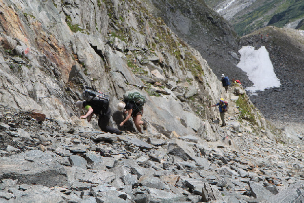 Aufstieg zur Mörchnerscharte, die letzten Meter bis zur Mörchnerscharte, |