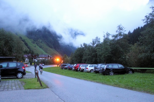 Am Start des Steinbockmarsches neben dem Naturparkhaus, Parkplatz am Weg in den Floitengrund