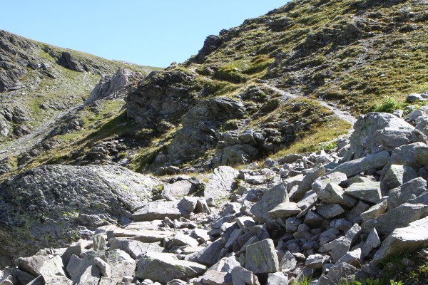 Abstieg zum Eiskarsee, Blick bergwärts zum Eiskarjoch