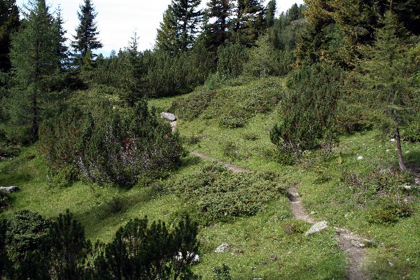 Weg von der Gerlossteinwand zur Kotahornalm im Wald oberhalb der Alm