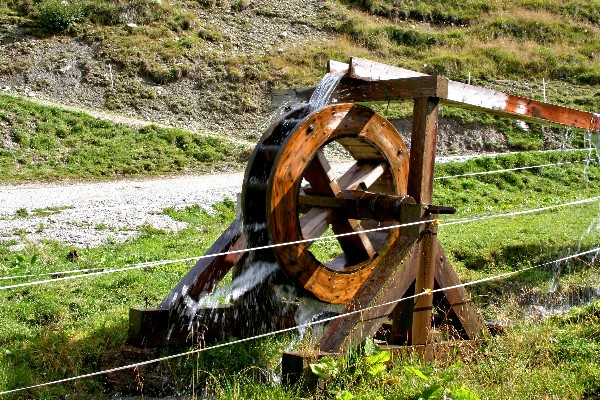 Mühlrad am Rand des Weges zur Geiselalm