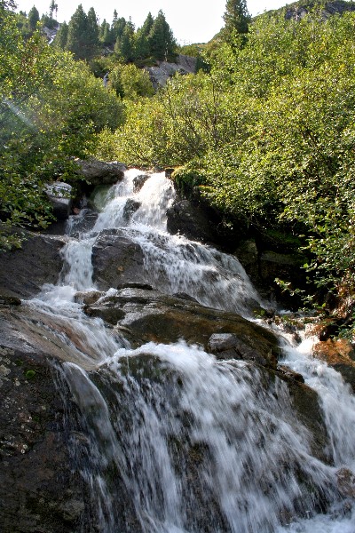 Blick über den Schwarzbrunnerbach mit seinen Stromschnellen oberhalb des Wasserfallweges