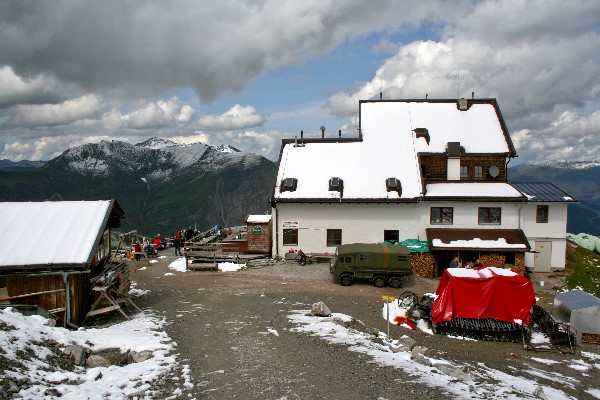 Blick über das Spannagelhaus des ÖTK (Österreichischen Touristen-Klub) hinüber zum Mitterkar und der Gamskarspitze vom Weg zum Tuxerfernerhaus