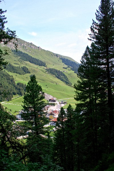 Blick ins Tuxertal und auf Hintertux vom Weg am Schraubenfall