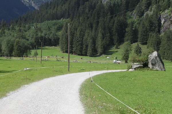 Blick talwärts über die Weiden der Schwemmalm im Zemmgrund