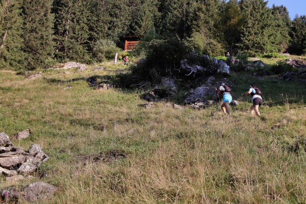 Blick bergwärts über den Weg 536 zur Birglbergalm mit Steinbockmarschierern |