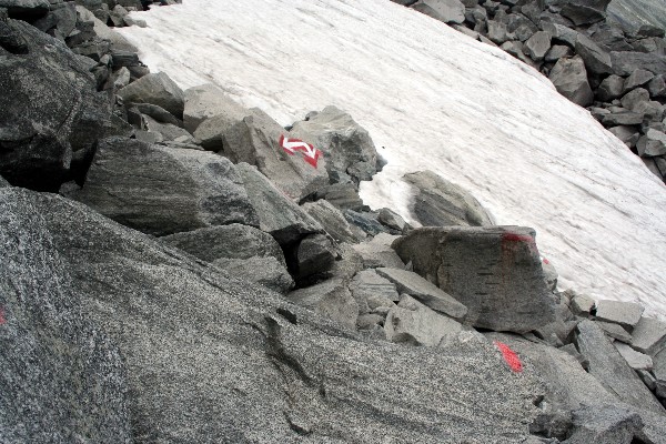 Abstieg mit Schneefeld