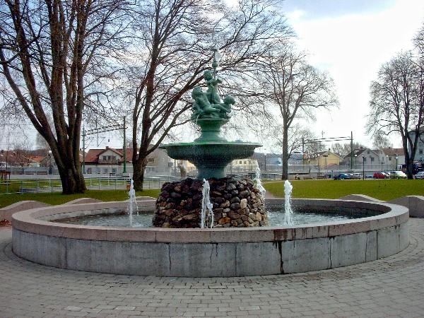Brunnen in der Grünanlage an Storgatan und Vallgatan.