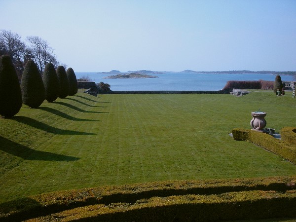 Blick vom Schloß Tjolöholms über den Schloßpark zum Kungsbackafjord